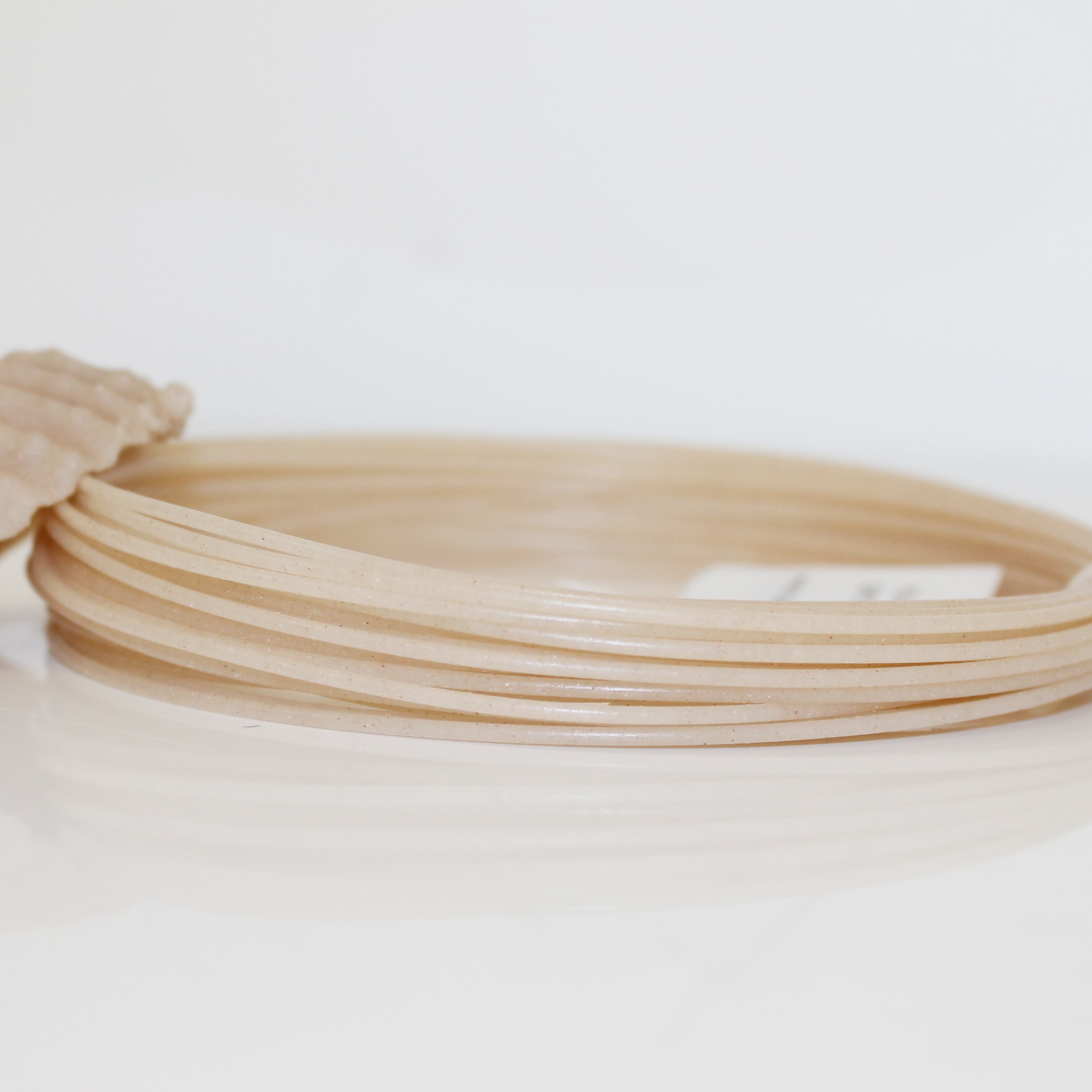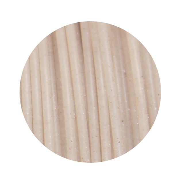 このフィラメントに配合されたホタテ貝の殻は、ノズルの詰まりを防ぐため粒子サイズを250μm以下に抑えています。また、このフィラメントでプリントされたパーツは、小さな粒子を含むエレガントなベージュ系の色合いが特徴で、ユニークな外観に仕上がります。